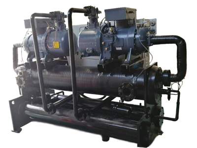 螺桿式冷凍機中的壓縮機采用臺灣漢鐘螺桿壓縮機,采用高質量軸承,標準工況下運行壽命可達10-15年以上,可選單機頭/雙機頭;采用殼管式蒸發(fā)器,直接冷卻,采用內螺紋高效換熱管銅管外表螺紋光滑,水側折流板采用費短路設計,使冷凍水混合,提高換熱效率。